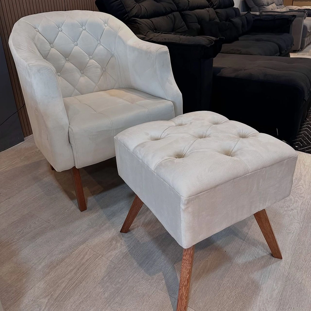 A Poltrona Itália é a perfeita combinação entre sofisticação atemporal e conforto acolhedor. Com encosto em capitonê e design envolvente, ela traz charme e requinte para qualquer ambiente, tornando-se um verdadeiro destaque na decoração.